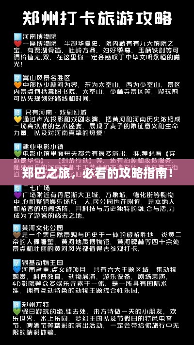 郑巴,这个充满魅力的地方,以其丰富的历史文化遗产、美丽的自然风光和独特的民俗风情吸引着无数游客,本篇文章将为您提供一份详尽的郑巴旅游攻略,让您轻松掌握旅行要点,尽情享受这片土地的精彩。