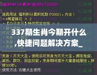 在游戏的众多玩法中,“337期生肖今期开什么”这一话题总能激起人们的热烈讨论和期待,对于即将揭晓的答案,人们总是充满期待和猜测,这不仅体现了人们对游戏的热情,更展现了人们对幸运的追求和对未来的好奇,本文为您呈现一个精心设计的“快捷问题解决方案_进阶版117.892-7”,旨在为您参与这类游戏时提供更加愉快、有条理的体验。