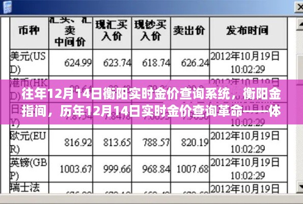 随着科技的飞速发展,金融市场的信息同步与数据分析日益显得至关重要,在这个数字化浪潮中,衡阳的一款高科技产品崭露头角——往年12月14日衡阳实时金价查询系统,以其前卫的科技风格和丰富的信息含量,为黄金投资者带来了一场革新性的体验,就让我们一起走进这个科技与传统金融交织的神奇世界。