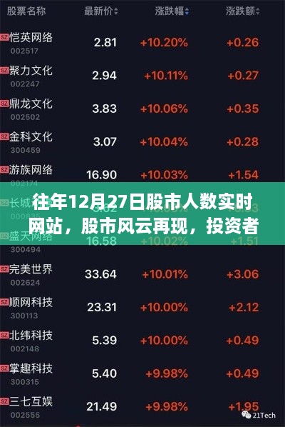 随着金融市场的日益繁荣,股市成为了众多投资者关注的焦点,在每年的重要日期,尤其是年末时段,股市的走势和参与者人数都备受关注,本文将围绕往年12月27日股市人数的实时网站展开,探讨股市风云、投资者热情及相关市场动态。