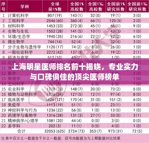 是上海明星医师排名前十名,他们在医疗领域取得了卓越的成就,为人们的健康事业做出了重要贡献,他们的医术和医德都值得人们尊重和信赖。