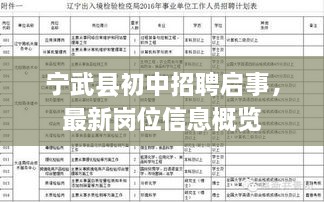 随着教育事业的不断发展,宁武县各初中学校对人才的需求也在逐渐增加,宁武县初中发布了最新招聘信息,旨在吸引更多的优秀人才加入到当地的教育事业中来,本文将详细介绍宁武县初中的最新招聘信息,帮助广大求职者了解相关情况。