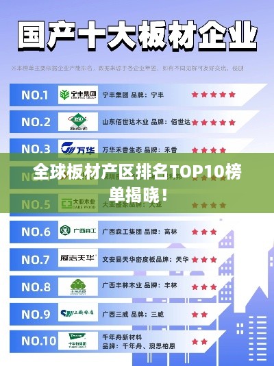 板材,作为建筑、家具、制造等行业不可或缺的材料,其质量与产地选择至关重要,本文将为您介绍全球板材产区排名前十名,带您了解这些地区的优势及特色。