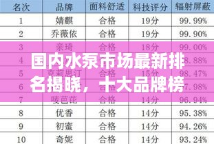 水泵作为流体输送的重要设备,广泛应用于水利、电力、化工、环保等领域,随着市场的不断发展,国内水泵品牌众多,竞争日益激烈,本文将介绍国内最新水泵排名前十名的品牌,以便读者了解市场现状和选择优质产品。